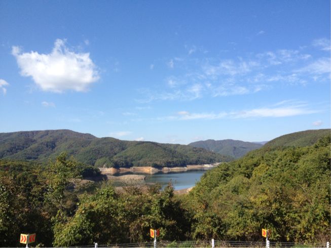 すっかり秋空、羽鳥湖と青空、気持ちいいツーリングです。