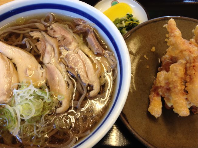 11時30分、寒河江のふもとにて、冷たい肉そばとげそ天950円を食す。昼前には満席の繁盛店です。