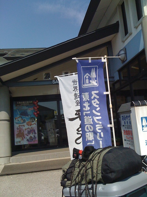この後、17時こさか七滝、17時50分ひない、18時30分大館能代空港でスタンプを押し、19時30分能代市に到着し、子供館でテントを張り、就寝しました。