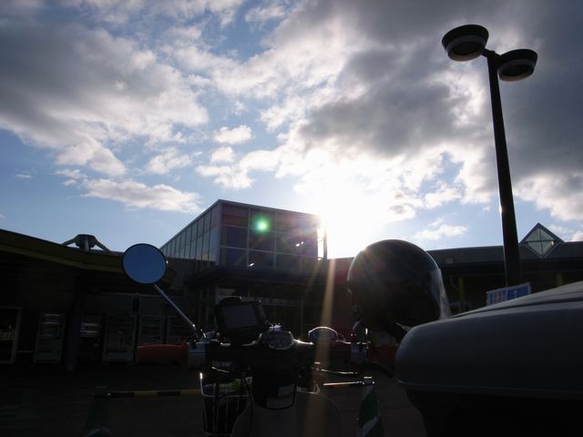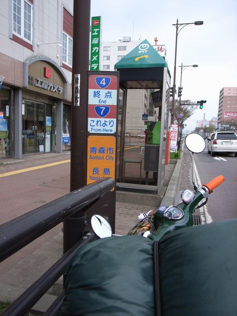 8時30分、青森市へ到着(12時間走行)。携行タンクを含め3.6リットルを給油、57km/l、まずます。スーパーふくやで250円弁当を購入して、アスパムで朝食。
