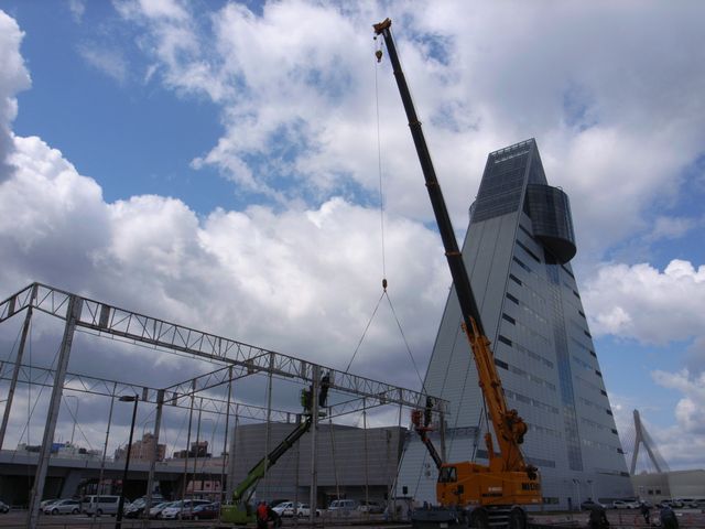 アスパムがクレーンでつられています。って感じに見えますね。