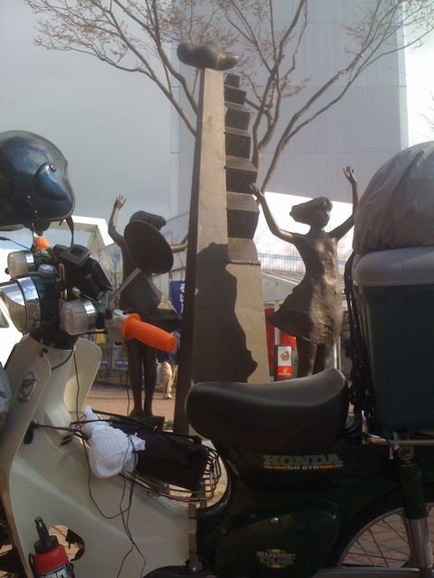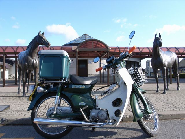混雑でカブを駐車する場所がなく、裏口で記念撮影。