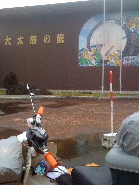 世界一の太鼓がある大太鼓の館前で記念撮影。