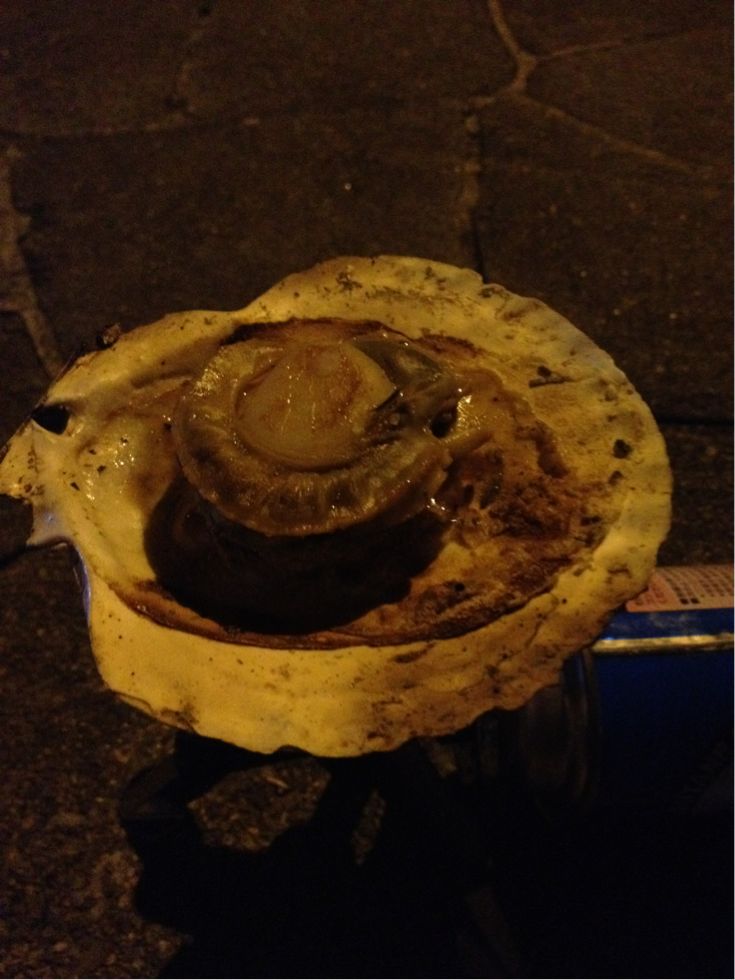 この後、石鳥谷まで南下し、休憩所泊。酒のつまみにホタテ。ちょっと焼き過ぎたか?