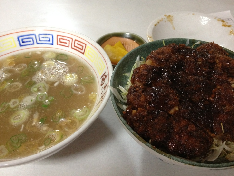 11時30分、大行列です。30分程で店に案内され、今回はソースかつ丼950円を注文。スープも付いていて、ジューシーなかつに、ほどよくしなったキャベツ、何と言ってもソースがご飯と一体となり、美味しくいただきました。帰りにお土産用ラーメン5色1100円を購入。