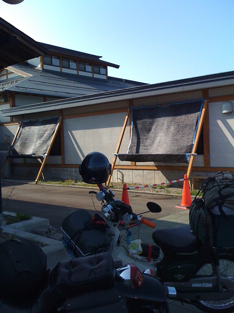 近くのキャンプ場を探しましたが見つからず、道の駅はなわに戻り、ちかくの街灯がある場所にテントを張り、缶ビール500mlと芋焼酎1杯を飲みながら、メールチェックし、22時就寝。