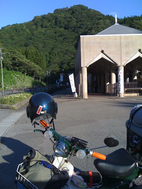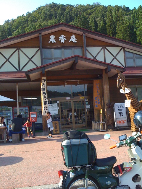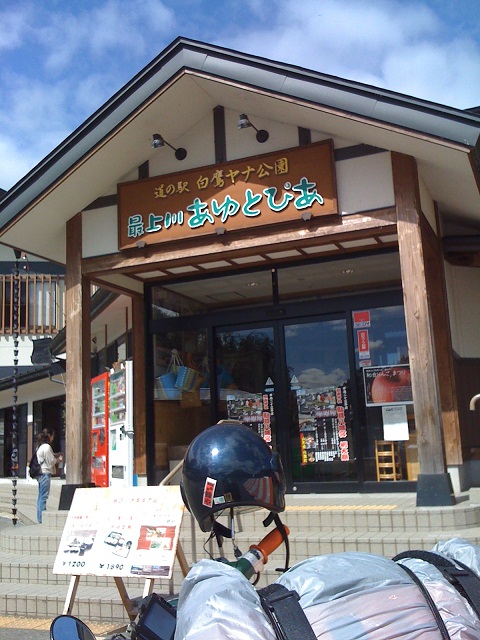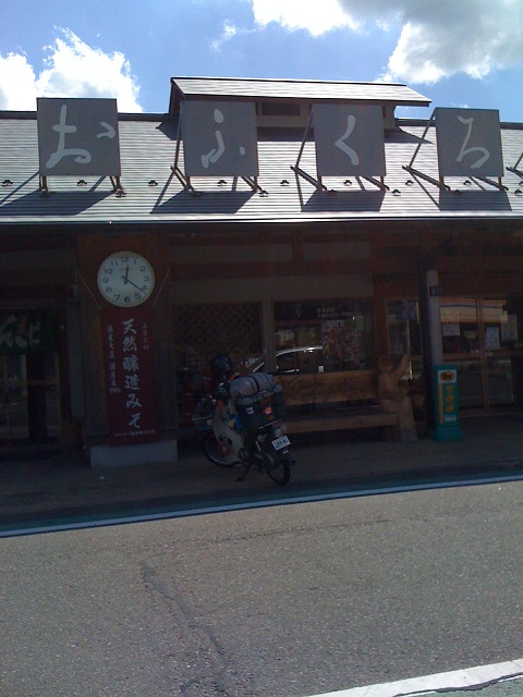 この後、にしかわに立寄りスタンプオン、月山へ行こうと問合せたところ、自動車道で125cc以下のバイクは通行禁止で、旧道もおすすめしないとのこと。ということで、西川から肘折経由で、とざわへ行くことにしました。
