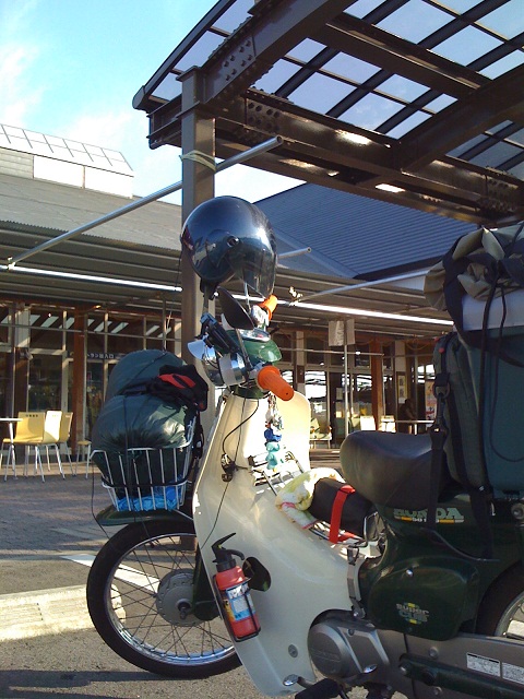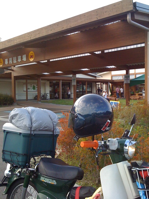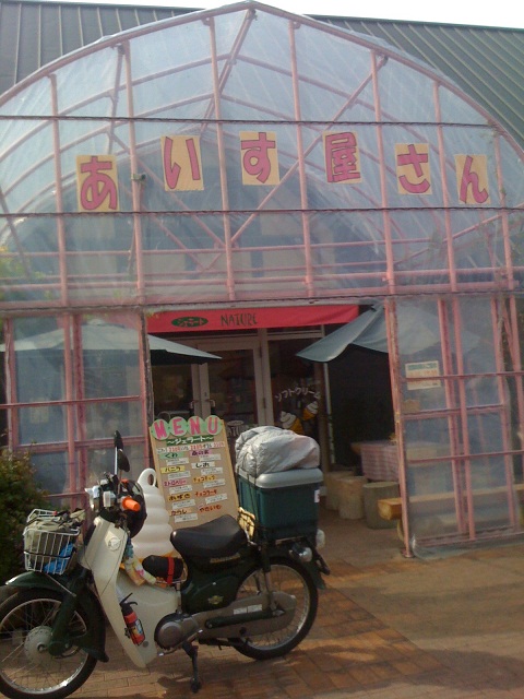ここつちゆは、激混みで、入り口付近にカブを停めて撮影しました。